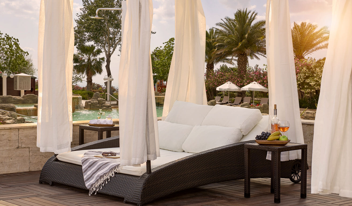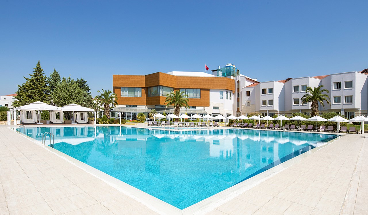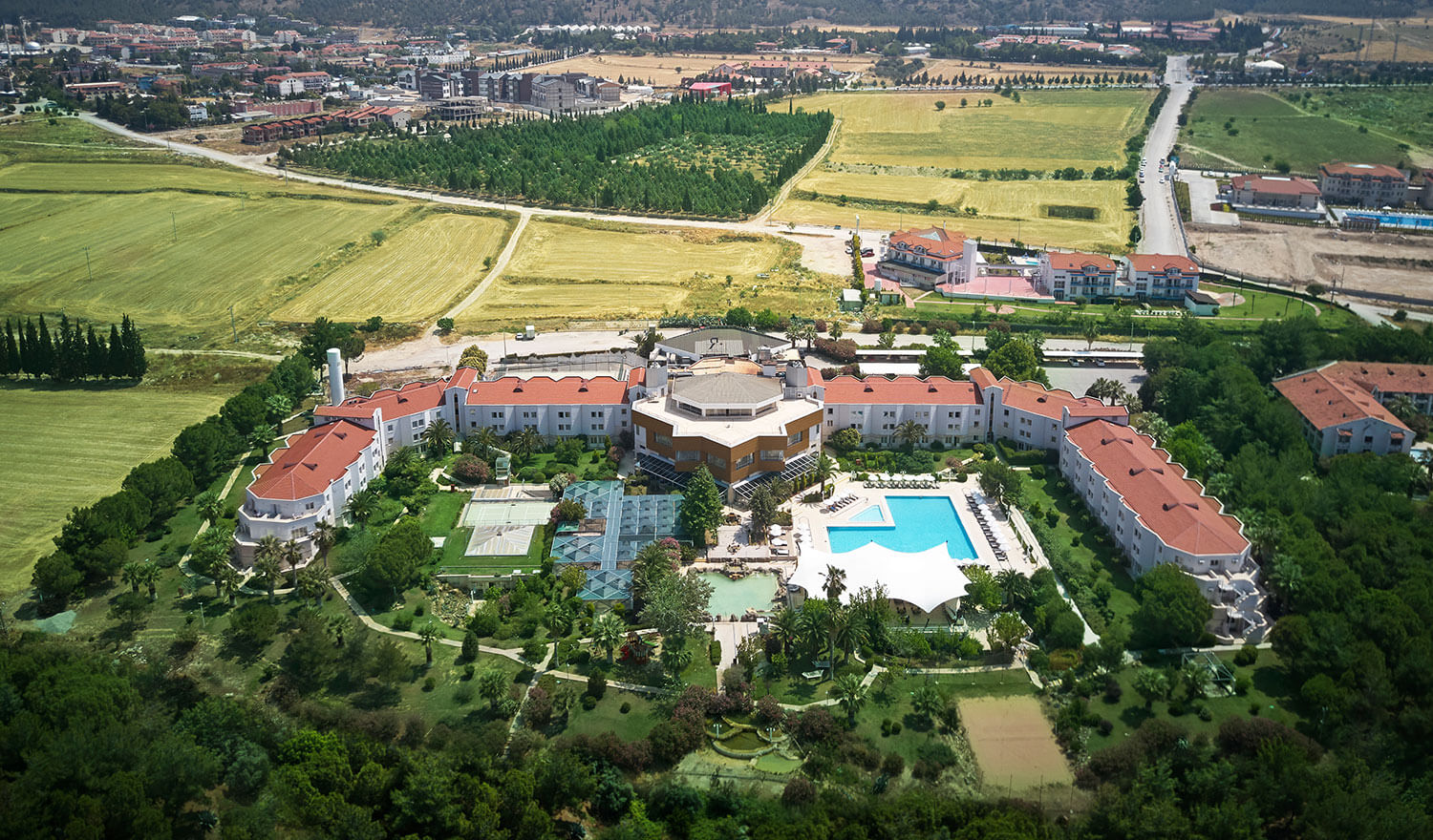 Toplam 264 odası bulunan tesiste, Açık-kapalı termal havuz, Açık havuz, çocuk havuzu ve soğuk şok havuzu mevcuttur.