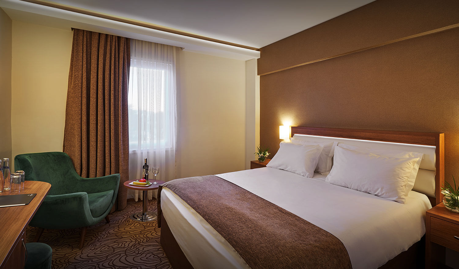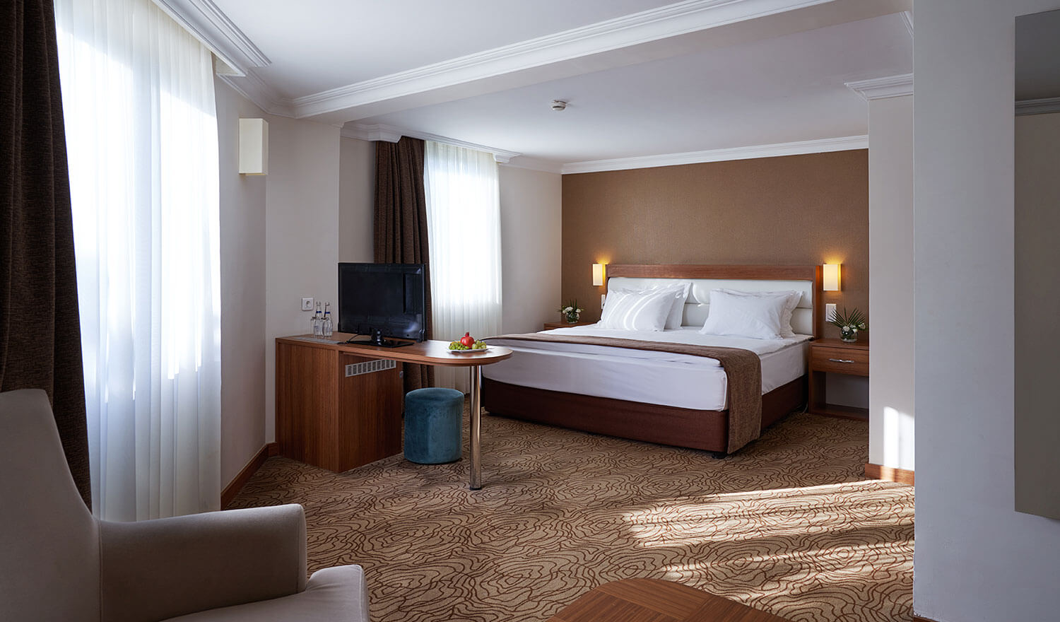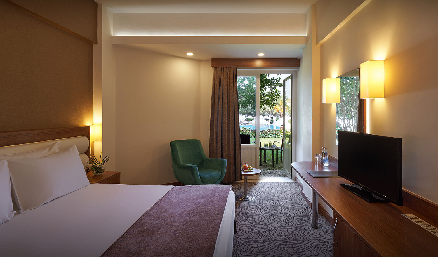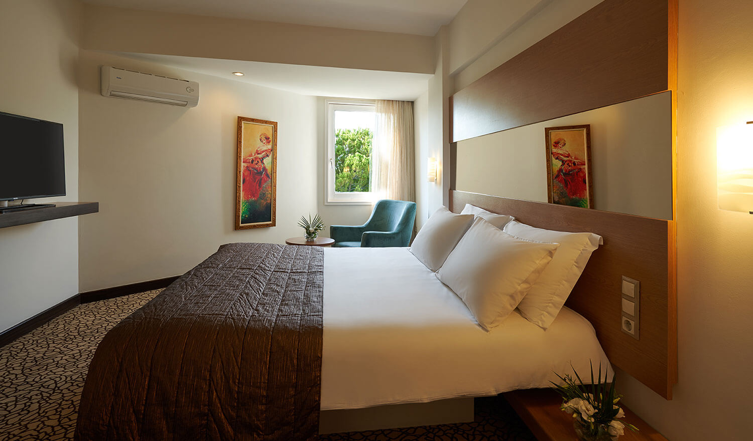 Tesisin ferah ve konforlu odalarında; klima, kablosuz internet, televizyon, uydu yayını ve minibar bulunuyor. 24 saat açık resepsiyon, bagaj muhafazası, çamaşırhane ve ütü hizmeti, tesisin diğer olanakları arasında yer alıyor.